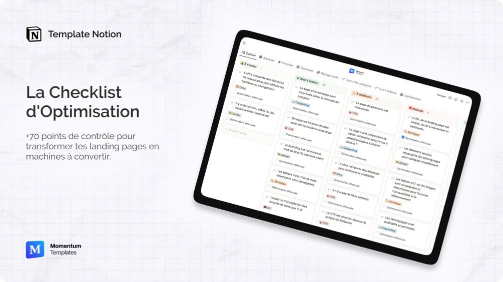La Checklist d'Optimisation est un système redoutable pour identifier les angles morts et les meilleurs leviers d’optimisation d'un site web.